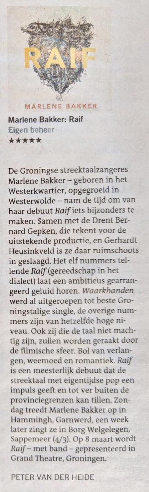 Een vijf sterren recensie in het DVHN vandaag. Iemand dit al gehoord, ben wel benieuwd.
