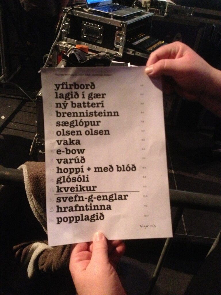 Hoppípollah/Með Bloðnasir en Glósoli vond ik ook weer erg goed. Ik stoorde me er, in tegenstelling tot Chevy, niet zo aan dat Jónsi de hoge noten niet haalde. Ik vond juist dat hij extreem goed zong (over de hele avond genomen). Varuð was voor mij trouwens ook een hoogtepuntje, met de gloeilampen op het podium.