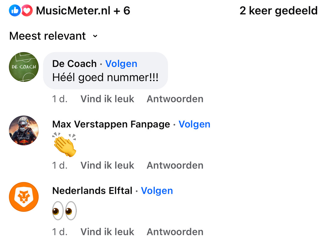 Ja, dat is wel een beetje treurig. Zijn trouwens geen willekeurige pagina's die liken en reageren, die komen allemaal uit dezelfde koker als het moederbedrijf van de Meter-sites. Alles voor de kliks zullen we maar zeggen...