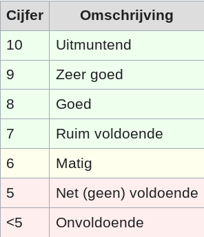In Nederland is een 5 onvoldoende. Vanaf 5,5 is het net voldoende.