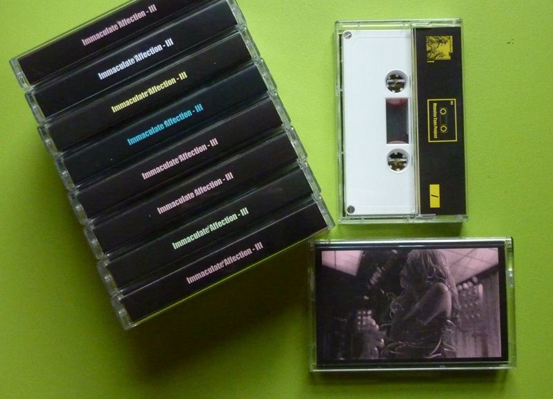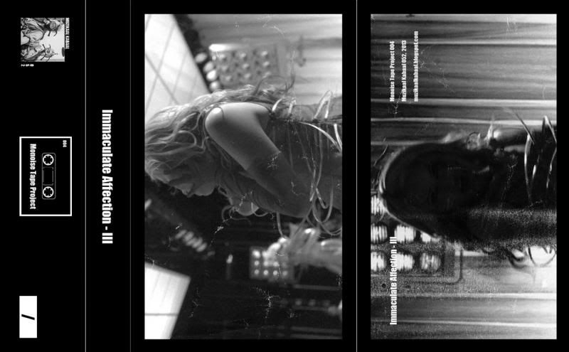 Immaculate Affection's latest release, III, offers a wall that hovers on the edge of perception, a composition of minimalist crackle that is continuously altered and affected by tape hiss, ambient noise, bodily sounds, and the thuds, whirrs and clicks of playback devices. A careful, precisely crafted tape that stands both as a compelling counterpoint to the debut releases on Vagary and as an engaging and delicate work in itself.