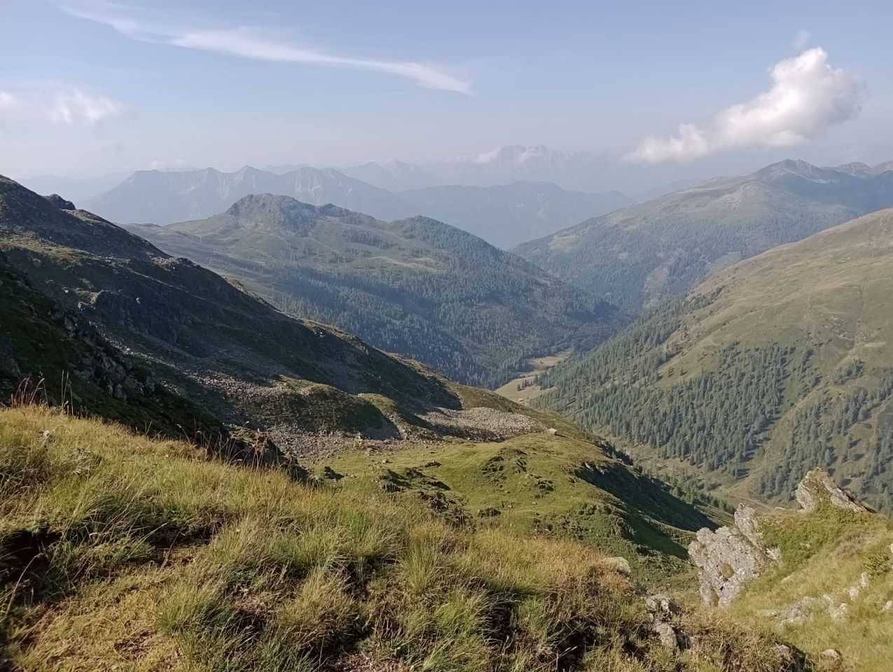 Net terug van een wandelvakantie in Karinthië, Oostenrijk. Vanaf het hotel hebben we een stuk of 5 zeer fraaie routes kunnen lopen. Het weer was prima, op een klein buitje de eerste dag na hebben we het in ieder geval droog kunnen houden! De 4e en 5e dag was een tocht naar een berghut en terug. Op de heenweg was het erg mistig, maar op de terugweg de volgende dag brak het zonnetje dan toch door! Uiteindelijk niet eens zo heel veel kilometers gemaakt (stuk of 60), maar wel genoeg hoogtemeters (stuk of 4.000). Leuke uitdagende routes langs bergmeertjes en over bergruggen ook met veel klim- en klauterwerk! Hieronder wat van de highlights en actiefoto's voor de liefhebbers: