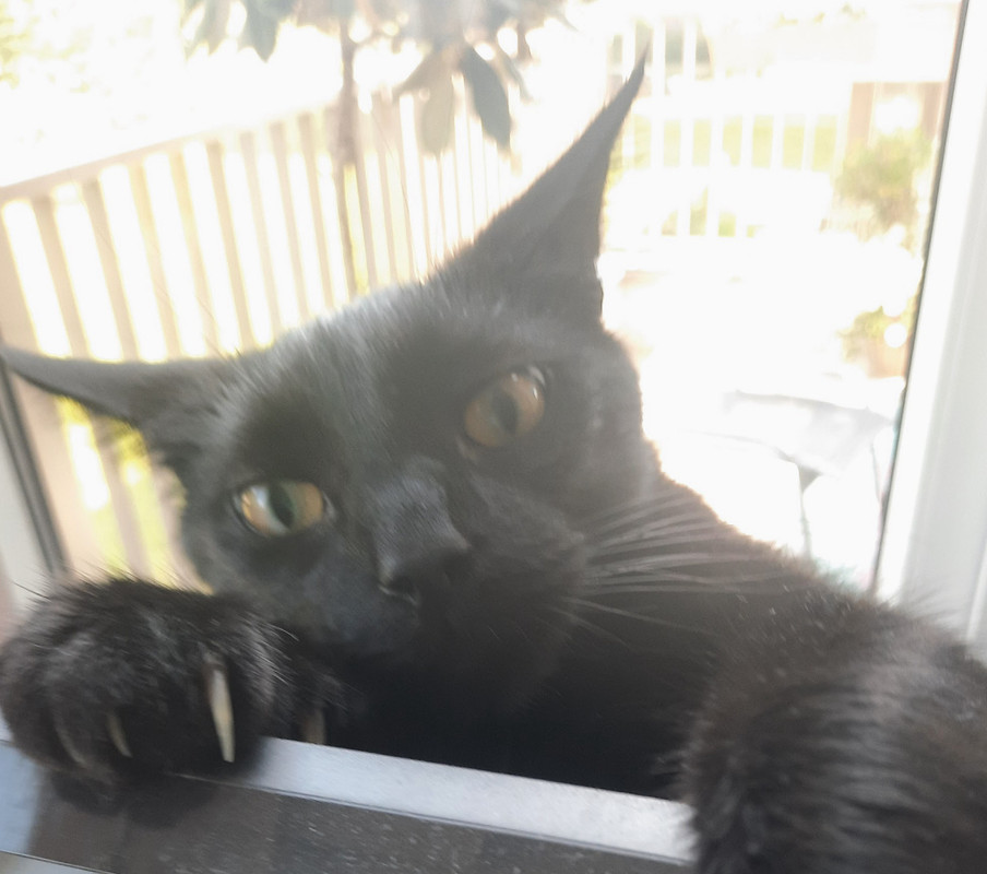 Eén raam in de keuken eruit gehaald om een kattenluikje te kunnen maken (dat kon niet in de deur)