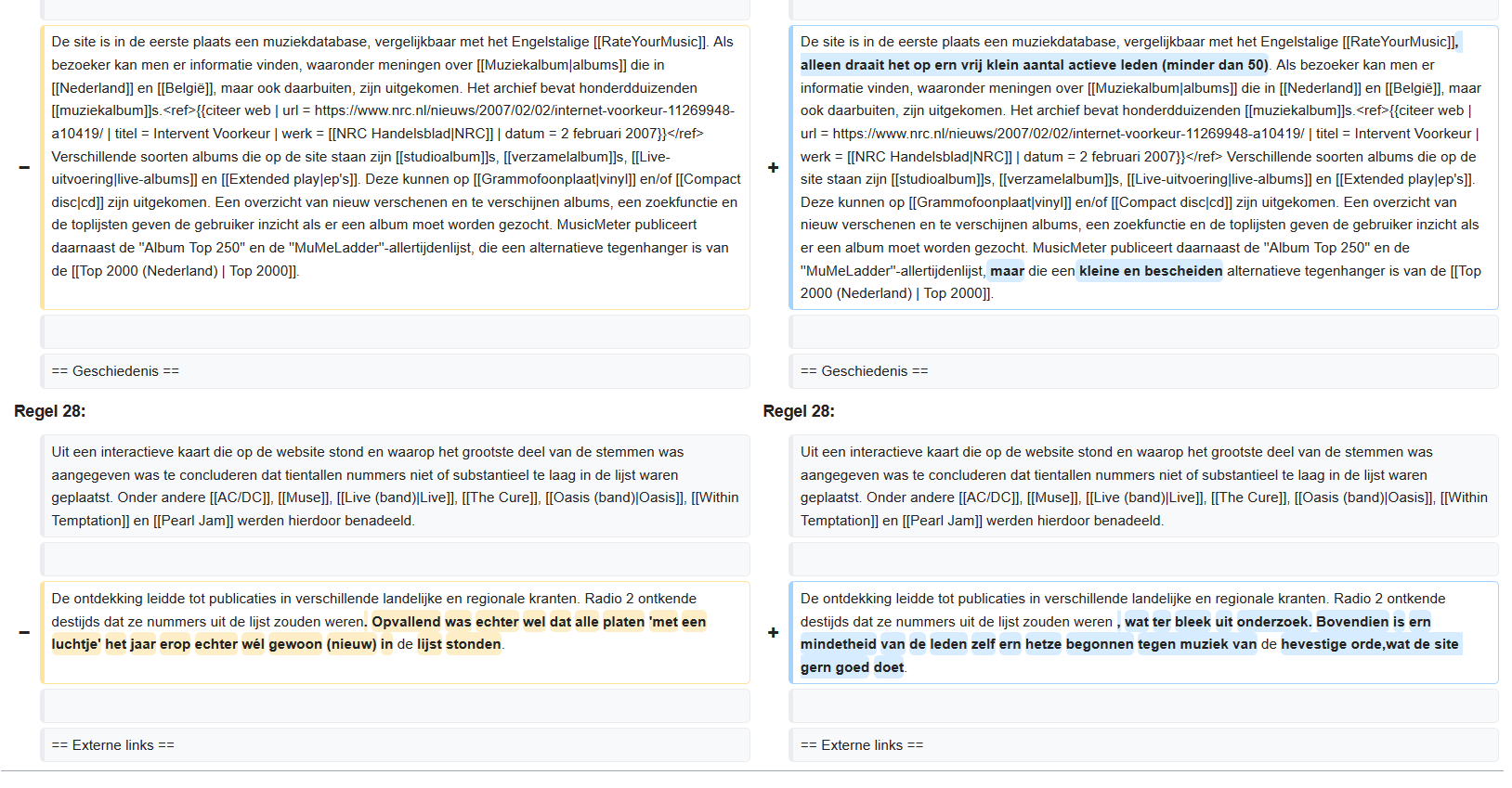 Een zegen voor de belangrijkste Nederlandstalige database + gemeenschap op gebied van muziek. Ook al ben ik als frequent user enigszins bevoordeeld, ik vind het niet anders dan terecht als je ziet hoeveel onderwerpen van vergelijkbare grootte ook een definitieve plek hebben gekregen in de vrije internetencylopedie.