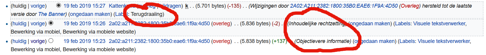 Bewerkingsgeschiedenis van MusicMeter - Wikipedia - nl.wikipedia.orgManmanman, hij is echt uit op een bewerkingsoorlog. Kan het niet verkroppen dat mensen gewoon constructief willen bijdragen aan Wikipedia door nuttige info over een onderwerp toe te voegen. De feiten die er over de website vermeld zijn hebben niks met promo te maken, maar leggen aan de wikipediabezoeker/leek gewoon uit wat de functionaliteit van MusicMeter zijn.