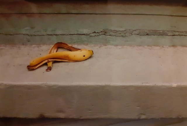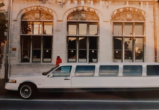 Voor je beste foto's heb je gewoonlijk wat geluk nodig. Die bananenschil had er ook minder sierlijk kunnen liggen, op een vensterbank met kleuren die afleiden. Zo'n limo zie je niet elke dag en deze stond mooi voor drie dezelfde ramen. Maar zonder het contrast van de nieuwgierige voorbijganger in knalrood jasje zou het een vrij saaie foto zijn. En dan dat kleurrijke geveltje. Ik vond het al de moeite er een foto van te maken, passeerden er ook nog bijpassende benen.