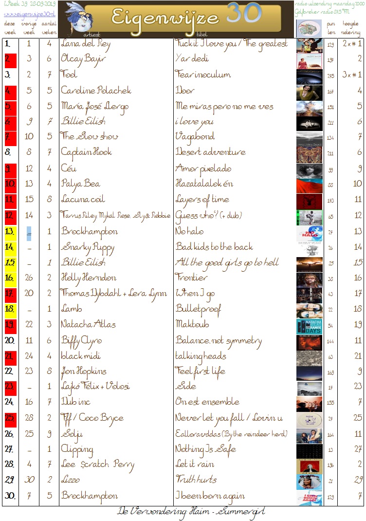 week 40 van 2019 met een enorme drukte in de top 10 waar de Paranoyds slachtoffer van worden, die kelderen om ruimte te maken voor een aantal andere. Ondertussen verdient Ariel View het toch zeker om ook minimaal een week op 1 te staan, sorry Melys. Volgende week kijk ik wel wie dan geslachtofferd wordt en wie niet.