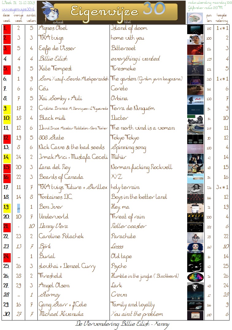 Ik weet nog niet zeker wat ik volgend jaar doe: ik vind het ontzettend leuk om nieuwe muziek te horen maar ervaar het vertalen van deze muziek naar een wekelijkse hitlijst soms als een crime. Ik vraag me wel eens af hoe jullie dat doen. Ach, wie weet neem ik het ook allemaal wel te serieus.