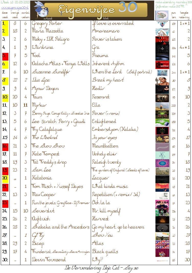 Vanavond even een 'kale' lijst, vanwege een matige tijdsplanning