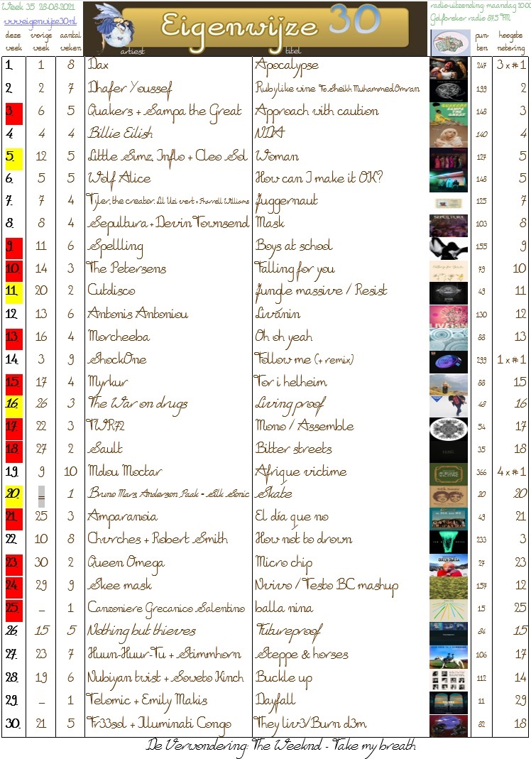 week 36 van 2021 waarin Softcult de nieuwe nummer 1 blijkt en The Beaches in elk geval deze week nipt van zich afhoudt. En dat in de week waarin hun nieuwe single ook al weer uit is, maar dat komt volgende week wel. 6 binnenkomers.