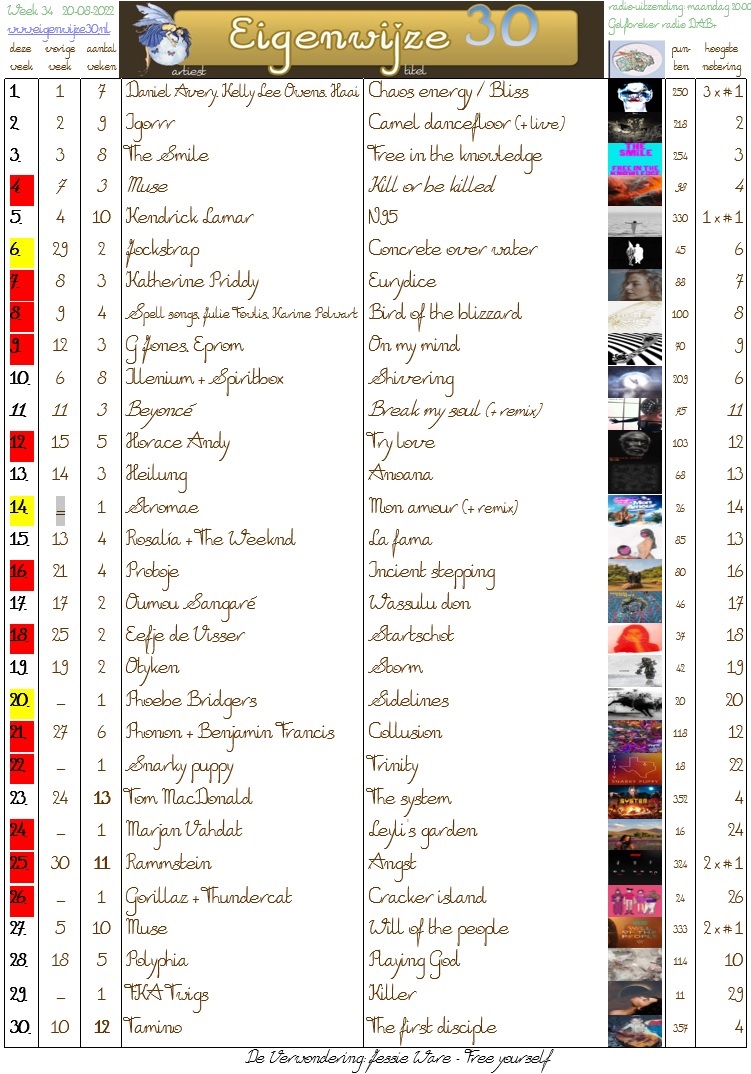 Stem nu op de Eigenwijze 30 van volgende week en stuur een mail naar [email protected] met jouw favorieten uit bovenstaande lijst op stem via deze online poll: QuestionPro Poll - Stemlijst Eigenwijze 30 voor week 35 van 2022 Stemmen kan tot vanavond 22:00.