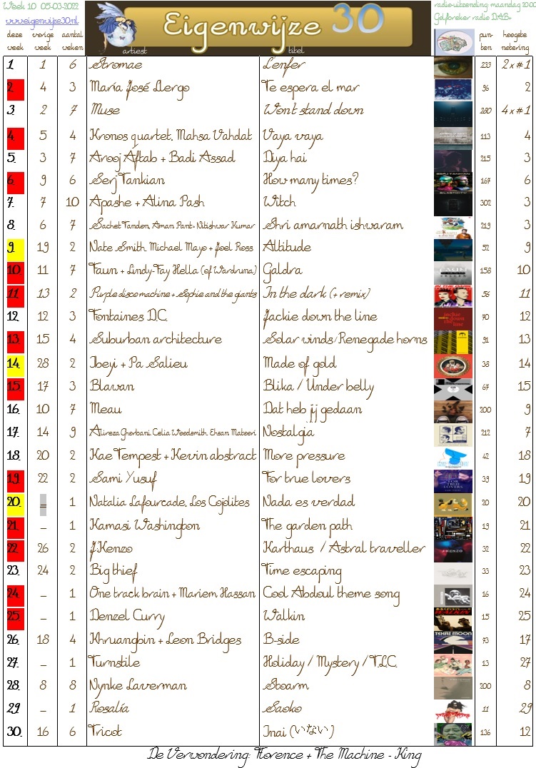 De EA Top 50... Daar doe je dan al die moeite voor... Elf zittenblijvers bij de bovenste veertien! Verderop gelukkig toch nog tien nieuwkomers.