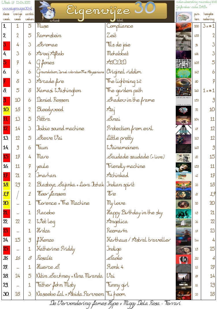 Beluister de voorlopige top 15 hier