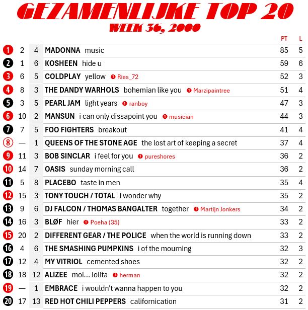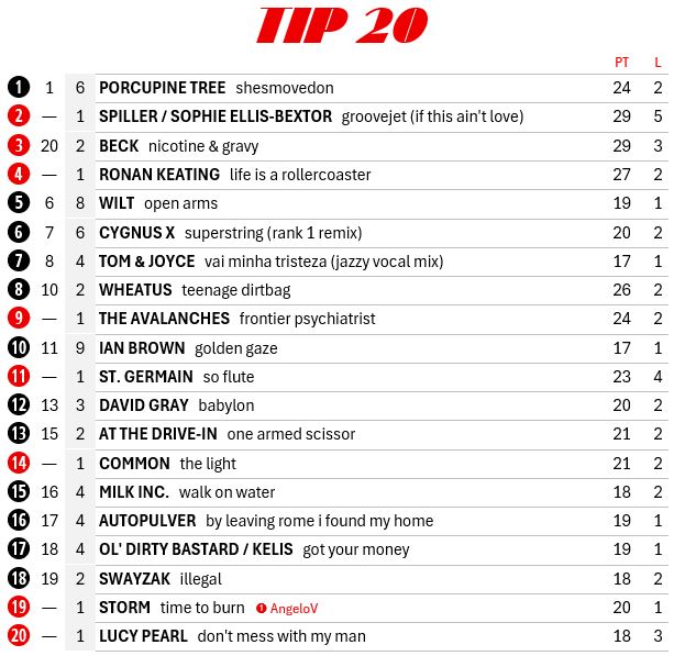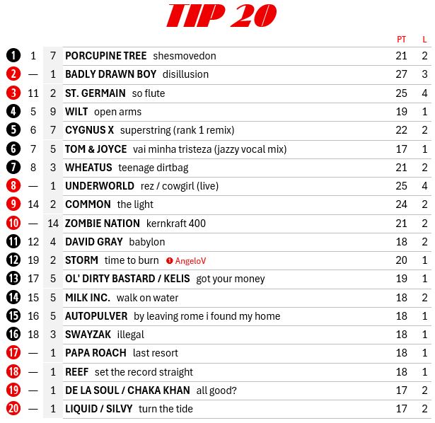 Muziek / Toplijsten en favorieten / 2001 - singles, eigen hitlijsten en besprekingen