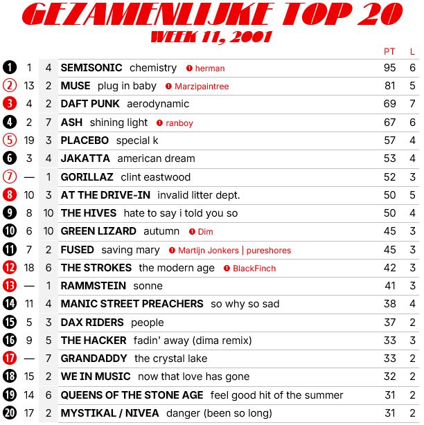 Muziek / Toplijsten en favorieten / 2001 - singles, eigen hitlijsten en besprekingen