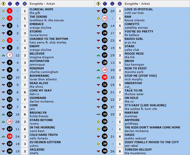 Hoogste nieuwkomer en meteen ook serieuze kanshebber op de nummer 1 de komende weken is de nieuwe single van Spinvis. De eerste keer dat ik het hoorde was ik toch wat verrast in het begin van het nummer, maar uiteindelijk toch weer een typisch Spinvis nummer, mooi opbouwend, met de kenmerkende poëtische teksten en zelfs een geloofwaardige gitaarsolo op het eind.
