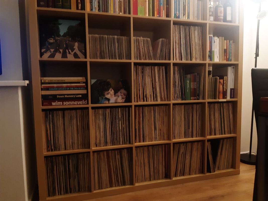 Enkele jaren geleden had ik ook een interne verhuis gedaan van lp's en het viel me ook op hoe zwaar die meerdere pakjes van twintig lp's wogen. Ze staan in een kast die ik al dertig jaar heb, op maat gemaakt, robuust en hopelijk onverslijtbaar.