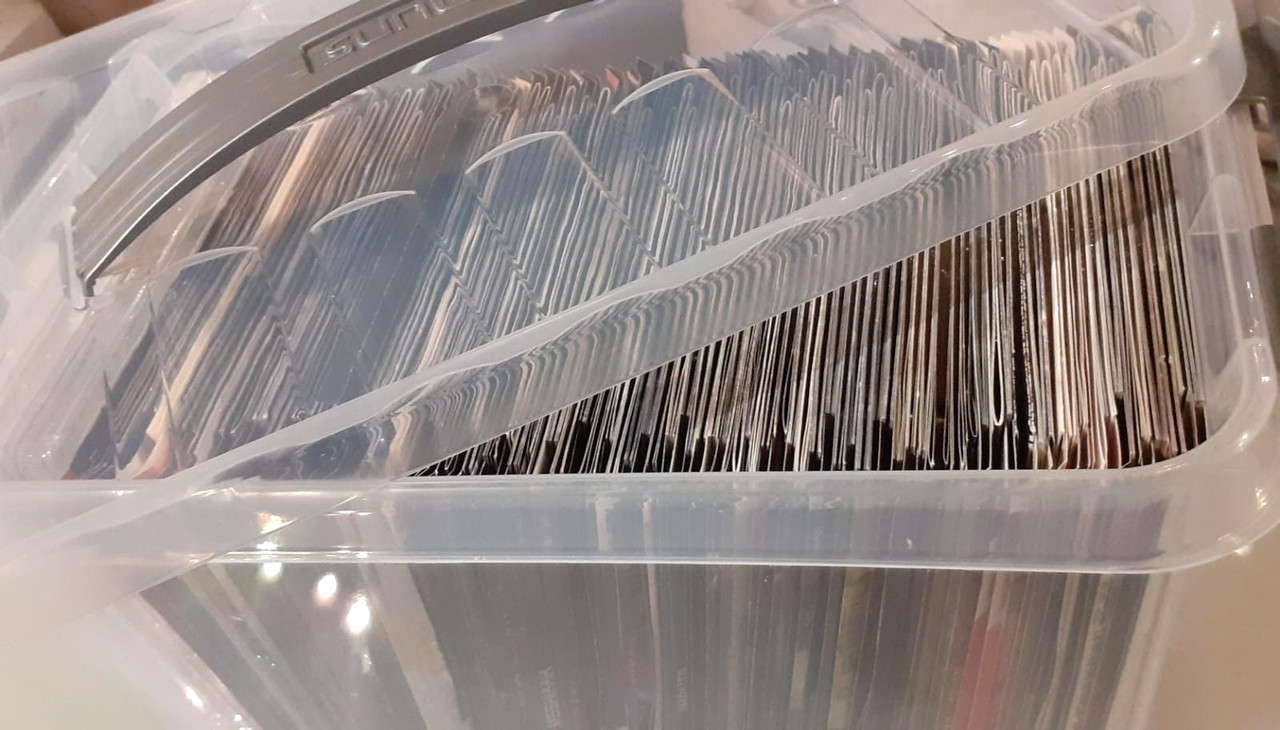 Voor cd opbergboxen tbv opslag uit zicht gebruik ik hoofdzakelijk de 6.5 liter Really Useful Box, die ook vaak door verkopers op beurzen gebruikt worden. Deze zijn bij veel online office webshops te verkrijgen.