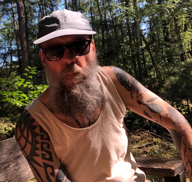R (aslan) hapt nog snel een laatste stukje vegan pizza weg en is klaar voor het feestje - goa party time!