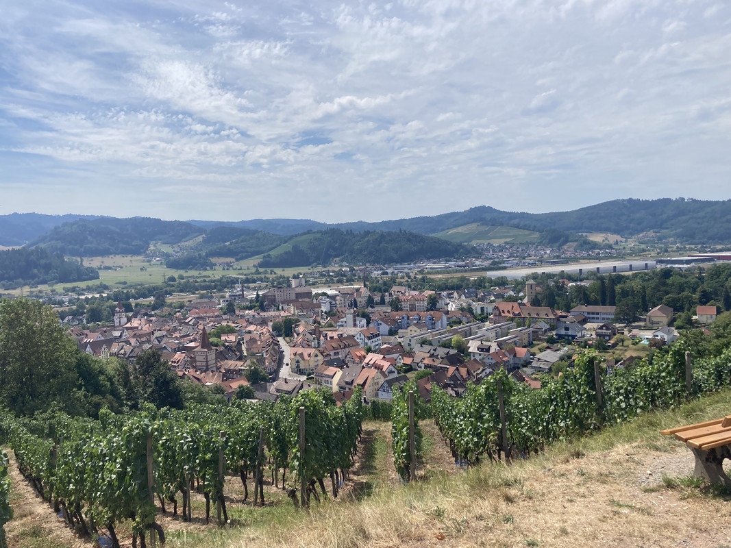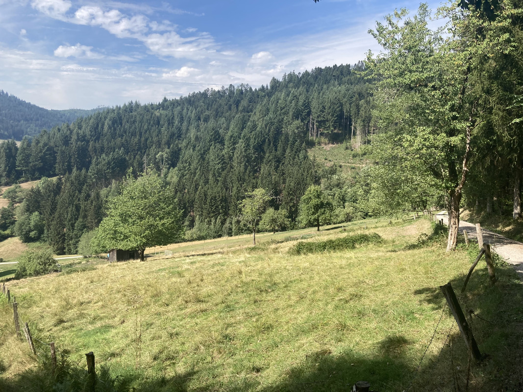 Ik had er al aardig wat kilometers op zitten toen ik langs het aanlokkelijke gasthuis kwam. Ik had een fiets gehuurd van de camping waar ik twee nachten verblijf. Of nou ja, een fiets? Een e-bike. Zo’n ding waarmee je jezelf direct diskwalificeert als gezond, fit en jong mens. Maar ja, geen enkele plek in de wijde omgeving die Rennrads of MTB’s verhuurt. En de camping had voor een schappelijke prijs een e-bike voor me. Een duivels dilemma, maar de drang om de omgeving te verkennen op de fiets was groter dan mijn principiële bezwaren. Het was een oud ding, die e-bike, en woog voor mijn gevoel wel honderd kilo. Ik had het ermee te doen en ging niet meer klagen. Of beter gezegd, zo min mogelijk klagen. En dus was ik, met mijn potsierlijke e-bike, aan het fietsen langs het Schwarzwald. Het begin van de route was de toeristische route langs de speciaal aangelegde fietspaden. Het was een comfortabel begin over glooiend landschap, met mooie uitzichten. Zodra ik Gegenbach zou bereiken - slechts enkele kilometers verwijderd van de slakkensoepplek - zou ik rechtsaf gaan, nog steeds over asfalt, maar wel meer op en af richting het hart van het Schwarzwald.