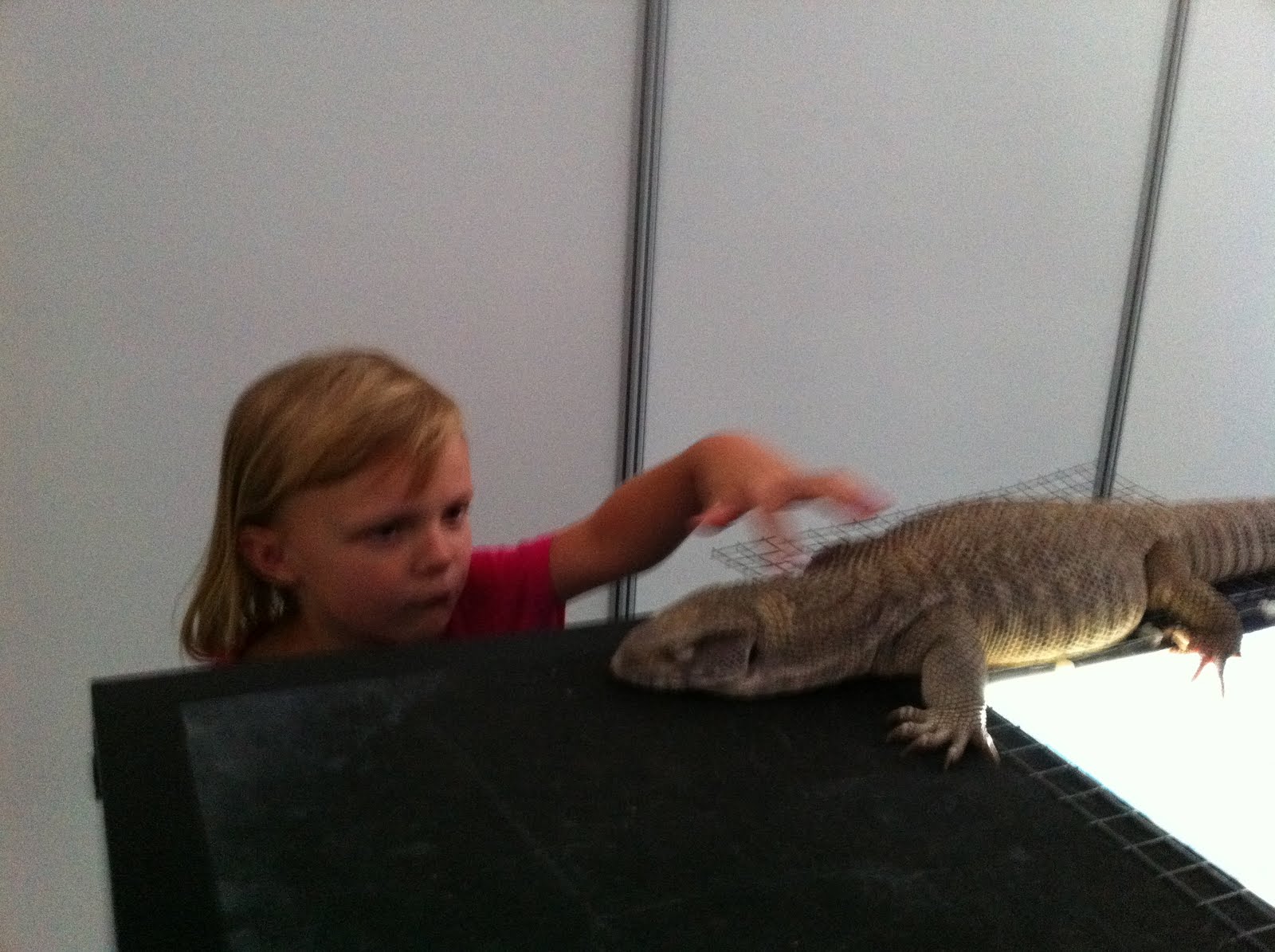 Meisje heet Kim en ze wilde ..... de leguaan (?) aanraken, maar toch net niet ...