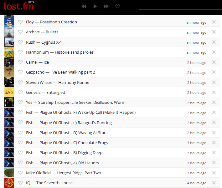 Wellicht een risico, al is tot nog toe geen enkel album met meer dan 3 nummers vertegenwoordigd en hadden de meeste erkende progkanonnen ook wel wat afvallers.Wel enigszins mijn vraagtekens bij 600 deelnemende nummers, zeker ook gezien het aantal keer dat de erkende progkanonnen vertegenwoordigd waren in de afgelopen editie. Straks zijn Marilion- of PT-albums integraal vertegenwoordigd, vrees ik.