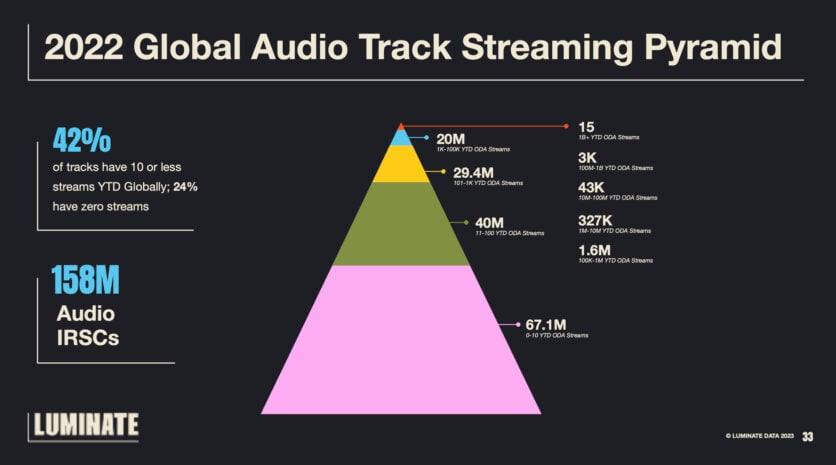"There are 67.1 million tracks sitting on music streaming services today that, in the 2022 calendar year, attracted 10 or fewer streams apiece, globally."